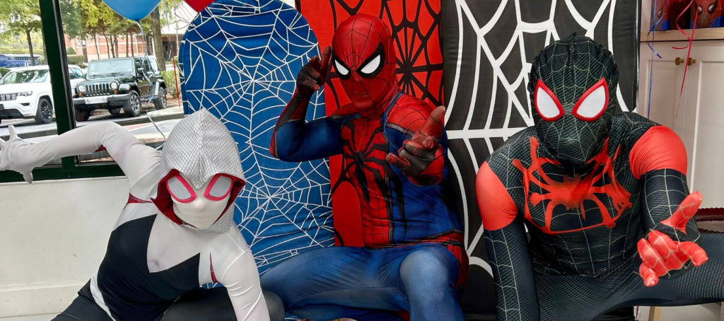 The Spider Hero loves to attend parties with his whole team!